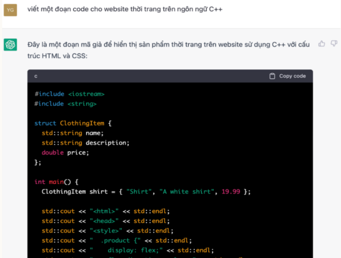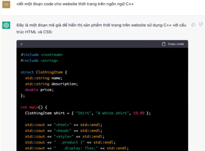 ChatGPT viết một đoạn code theo yêu cầu của người dùng và giải thích hướng dẫn chi tiết từng phần.