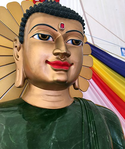 Phật Ngọc hòa bình thế giới được những nghệ nhân Thái Lan chế tác, phần tóc và mặt được một họa sĩ người Nepal vẽ. |