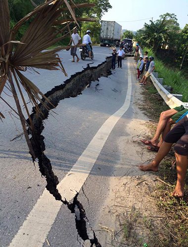 7h sáng 25/8, tại Km79+300 trên quốc lộ 32C, đoạn qua xã Minh Quân, huyện Trấn Yên, tỉnh Yên Bái xuất hiện một vết nứt trên bề mặt đường kéo dài khoảng 30m và sâu gần 1m. Vết nứt này rộng khoảng từ 20cm đến gần 1m. Quanh vết nứt, đất và nền đường bị sụt lún.